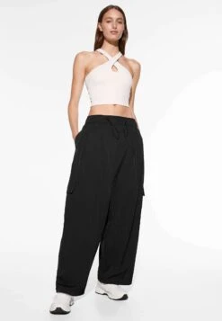 Oysho Cropped Microperforated Technical Sleeveless TopBlack Donna T-shirt E Top OY141D097-Q11