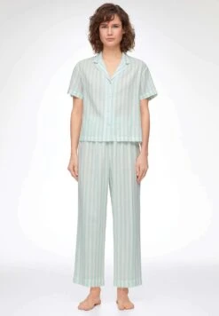 Oysho Stripe Short-SleevedMaglia Del PigiamaGreen Donna Intimo Notte E Loungewear OY181Q12H-M11