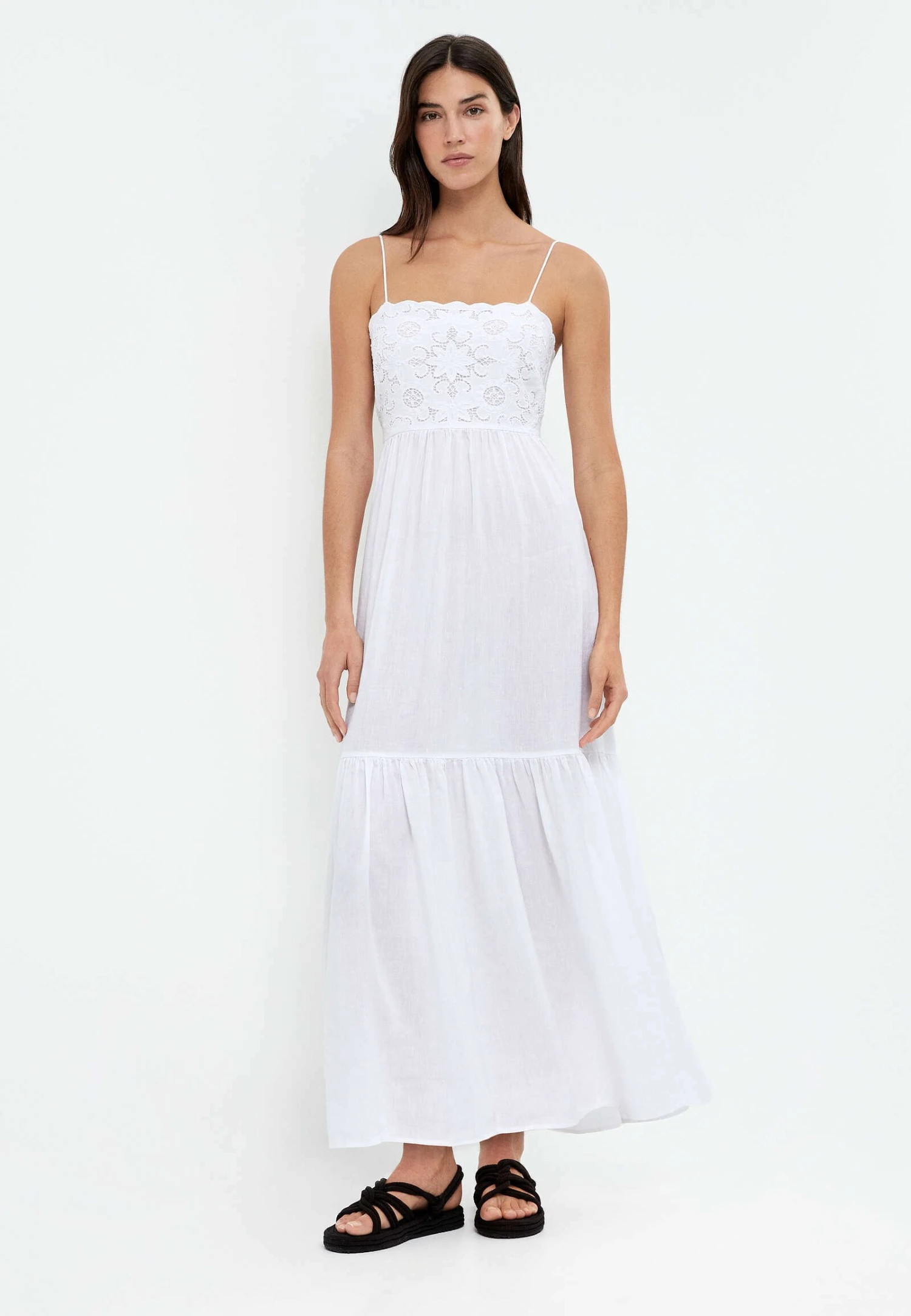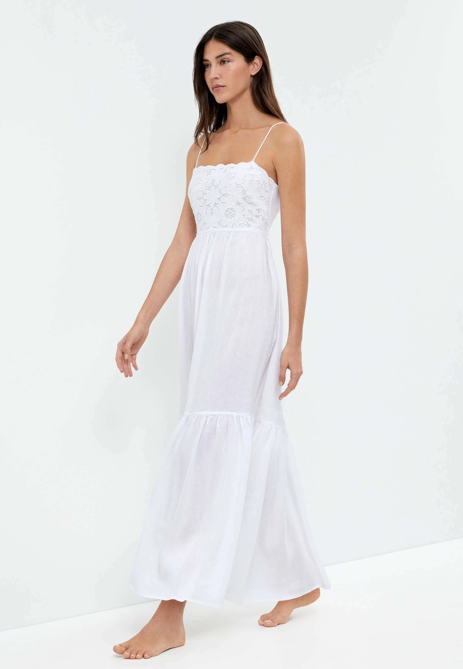 Oysho Embroidered LongVestito LungoWhite Donna Vestiti OY121C0BX-A11