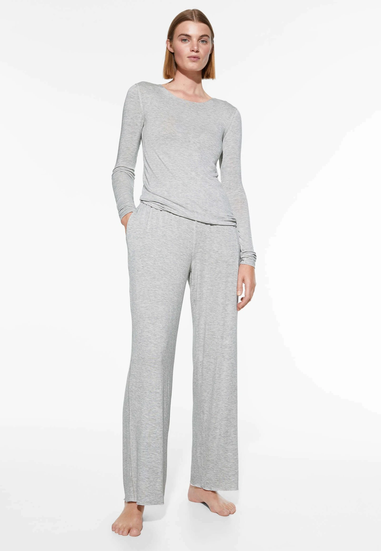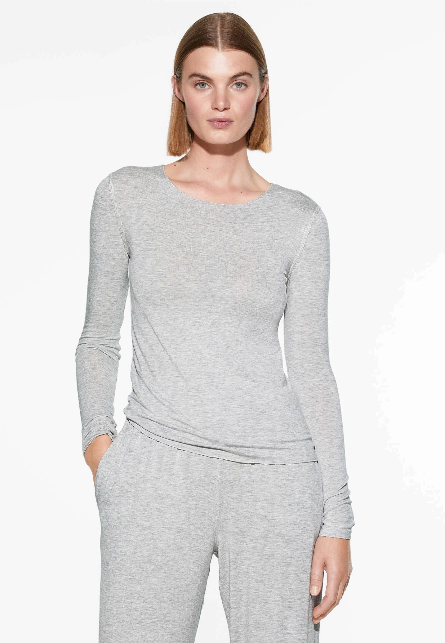 Oysho Extra-Soft Long-SleevedMaglia Del PigiamaLight Grey Donna Intimo Notte E Loungewear OY181Q12S-C11
