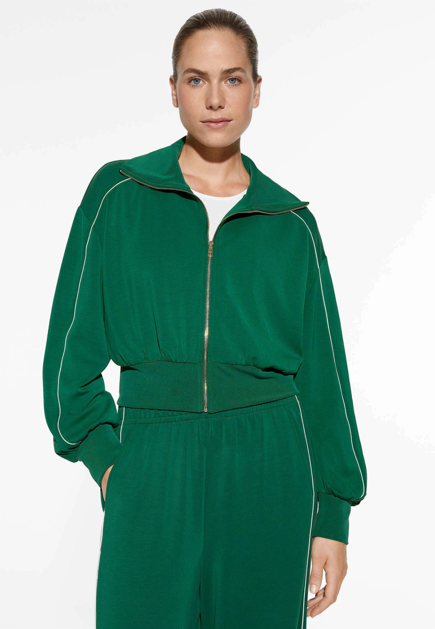 Oysho With Piping – Felpa Con Zip – Green